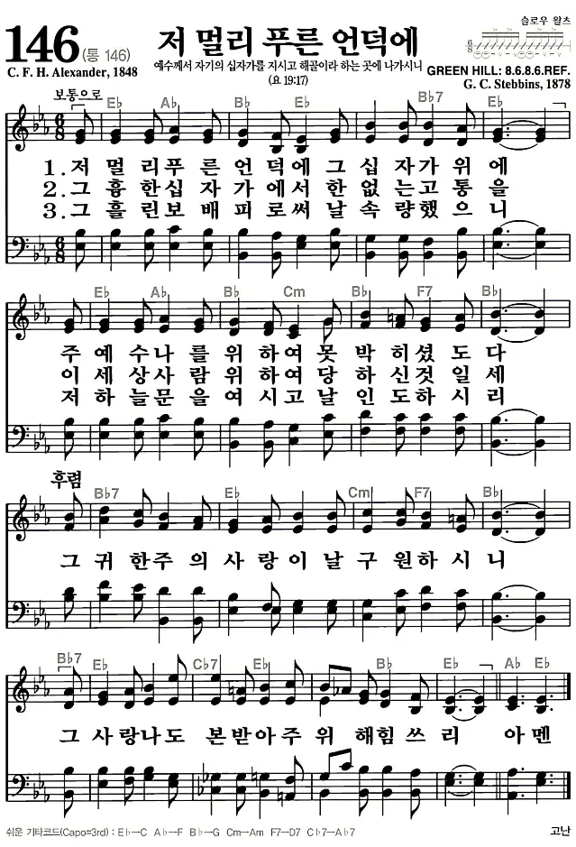 새찬송가 악보: 146장 저 멀리 푸른 언덕에(고화질/가사)