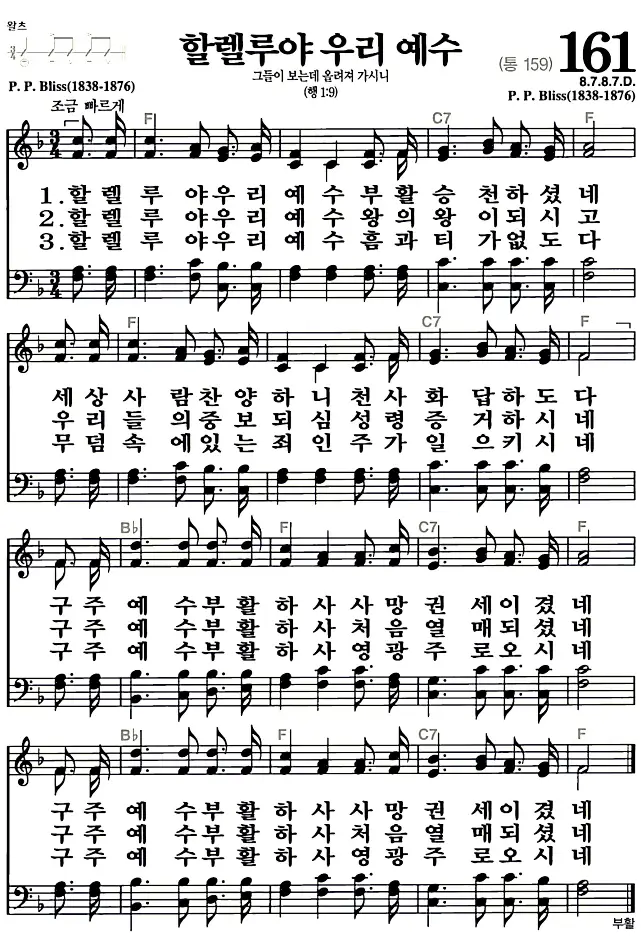 새찬송가 악보: 161장 할렐루야 우리 예수(고화질/가사)