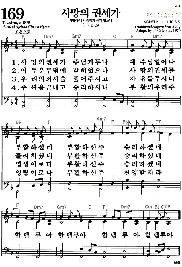 새찬송가 169장 사망의 권세가의 고화질로 스캔된 새찬송가 악보입니다.