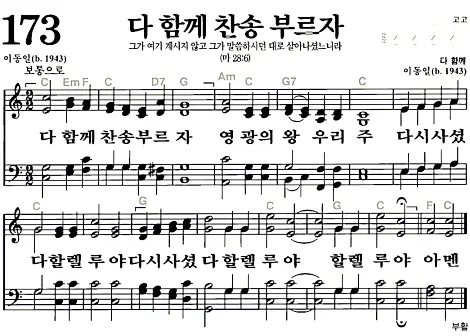 새찬송가 악보: 173장 다 함께 찬송 부르자(고화질/가사)