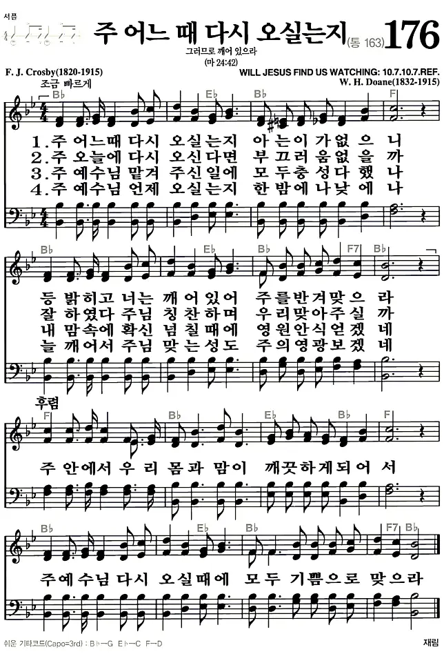 새찬송가 176장 주 어느 때 다시 오실는지의 고화질로 스캔된 새찬송가 악보입니다.