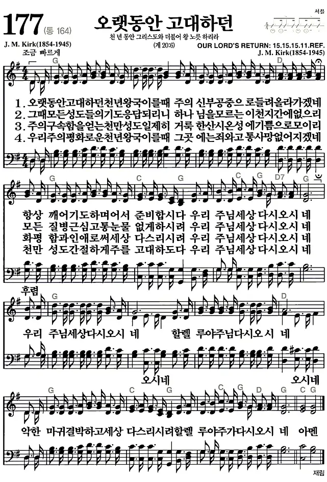 새찬송가 악보: 177장 오랫동안 고대하던(고화질/가사)