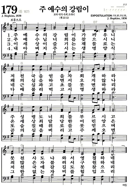 새찬송가 악보: 179장 주 예수의 강림이(고화질/가사)