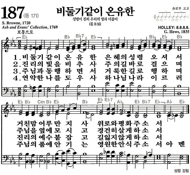 새찬송가 악보: 187장 비둘기 같이 온유한(고화질/가사)