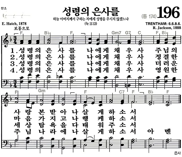 새찬송가 악보: 196장 성령이여 은사를(고화질/가사)