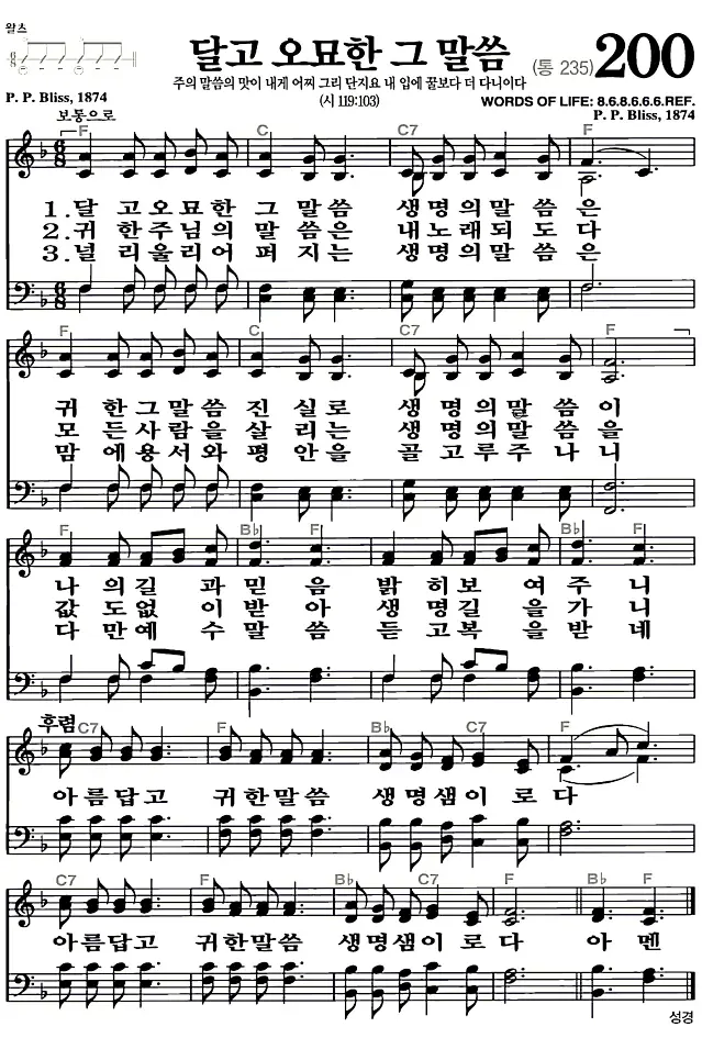 새찬송가 악보: 200장 달고 오묘한 그 말씀(고화질/가사)