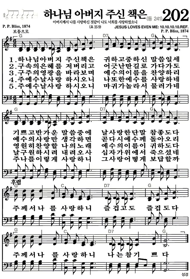 새찬송가 202장 하나님 아버지 주신 책은의 고화질로 스캔된 새찬송가 악보입니다.