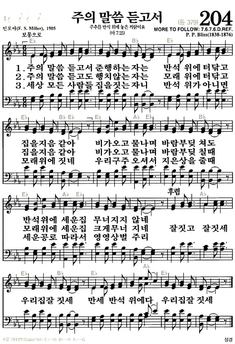 새찬송가 악보: 204장 주의 말씀 듣고서(고화질/가사)