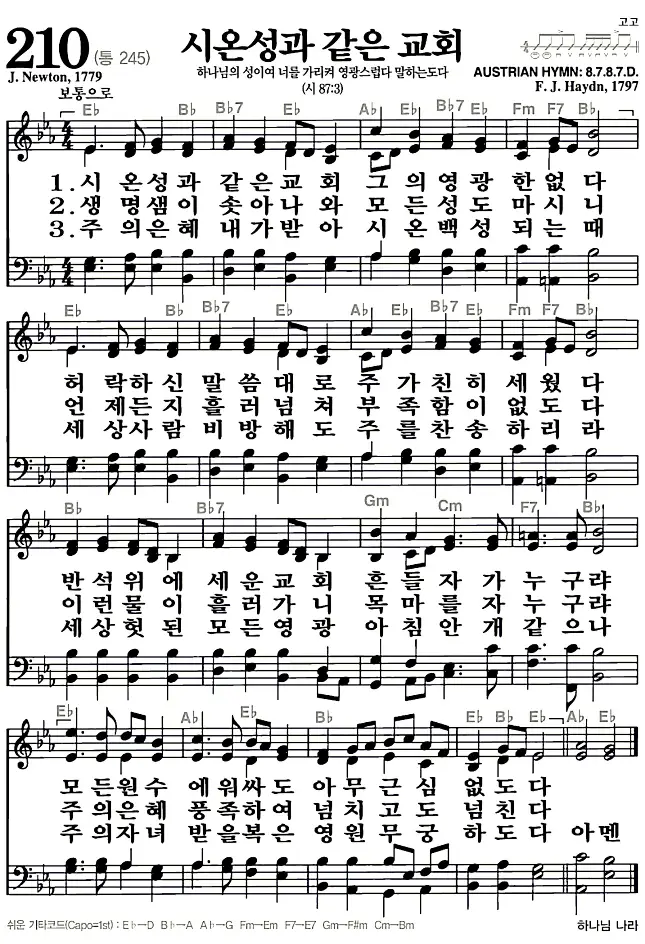새찬송가 악보: 210장 시온성과 같은 교회(고화질/가사)