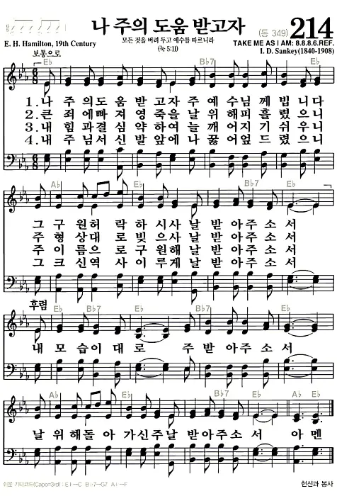 새찬송가 악보: 214장 나 주의 도움 받고자(고화질/가사)