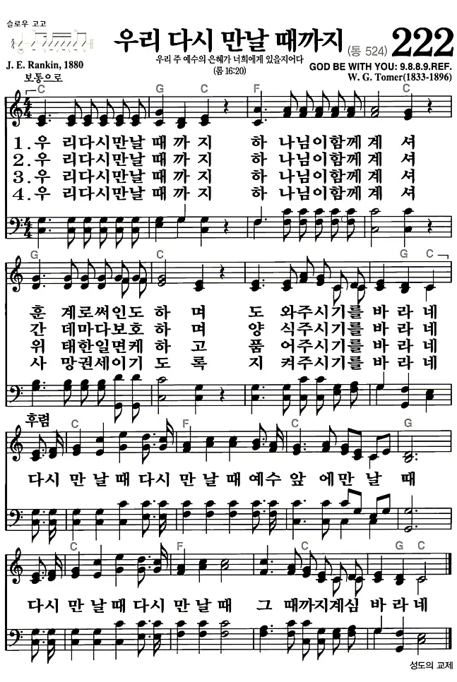 새찬송가 악보: 222장 우리 다시 만날 때까지(고화질/가사)