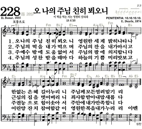 새찬송가 악보: 228장 오 나의 주님 친히 뵈오니(고화질/가사)