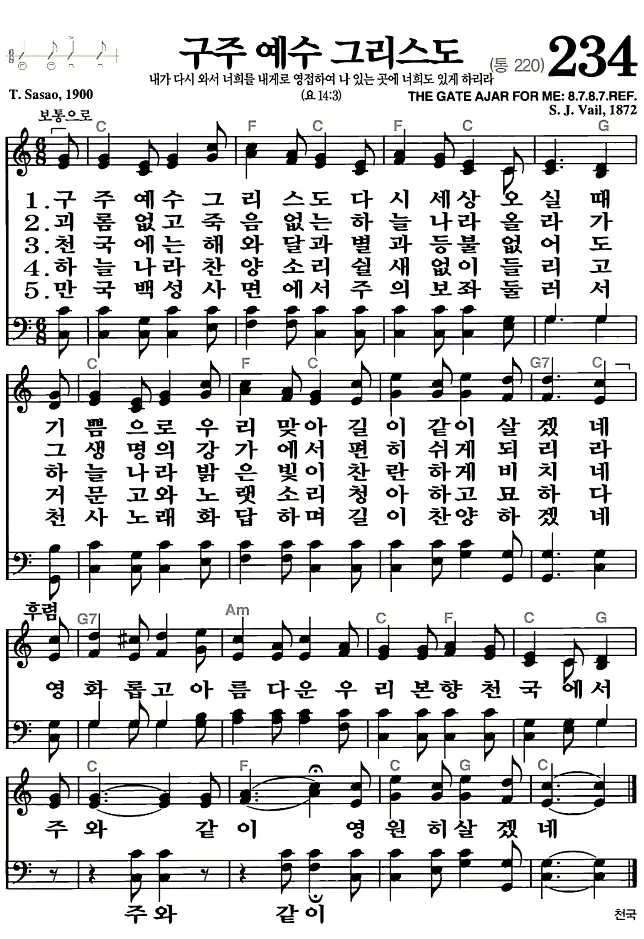 새찬송가 악보: 234장 구주 예수 그리스도(고화질/가사)
