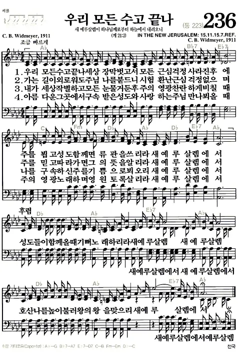 새찬송가 악보: 236장 우리 모든 수고 끝나(고화질/가사)