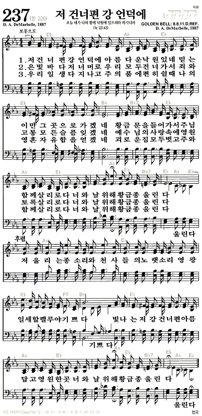 새찬송가 악보: 237장 저 건너편 강 언덕에(고화질/가사)