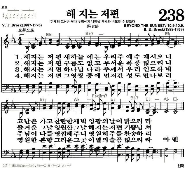 새찬송가 악보: 238장 해 지는 저편(고화질/가사)