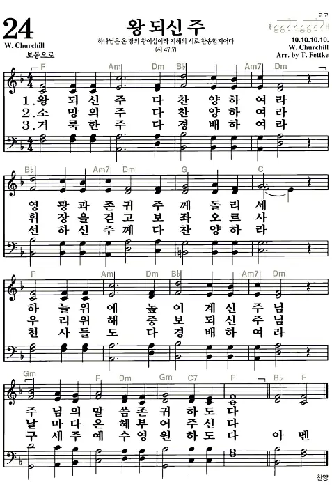 새찬송가 악보: 24장 왕 되신 주(고화질)