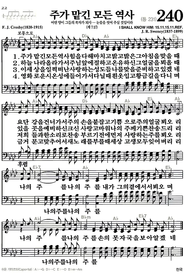 새찬송가 악보: 240장 주가 맡긴 모든 역사(고화질/가사)