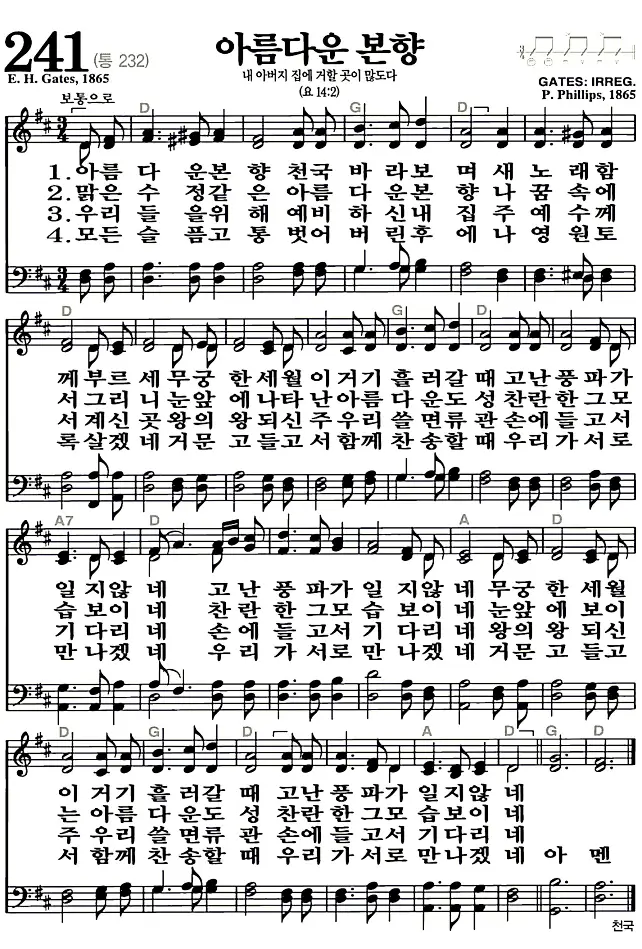 새찬송가 악보: 241장 아름다운 본향(고화질/가사)