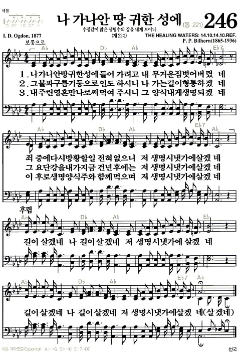 새찬송가 악보: 246장 나 가나안 땅 귀한 성에(고화질/가사)