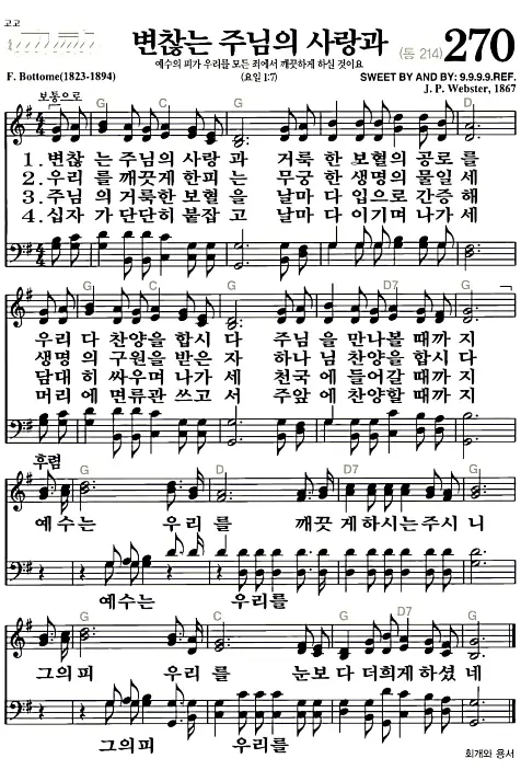 새찬송가 악보: 270장 변찮는 주님의 사랑과(고화질/가사)
