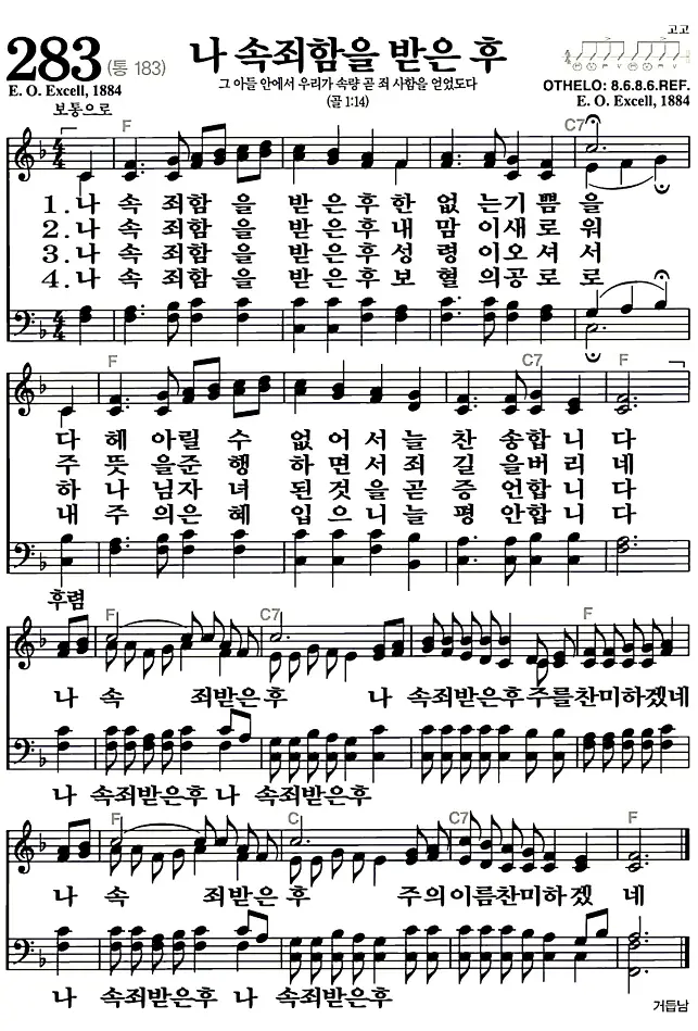 새찬송가 악보: 283장 나 속죄함을 받은 후(고화질/가사)