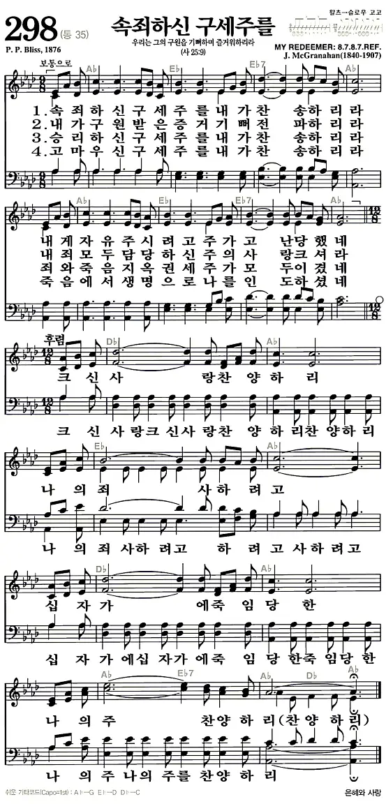 새찬송가 악보: 298장 속죄하신 구세주를(고화질/가사)