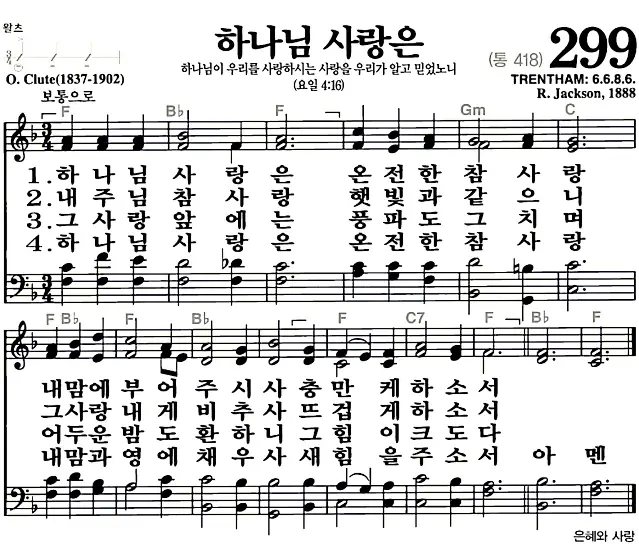 새찬송가 악보: 299장 하나님 사랑은(고화질/가사)