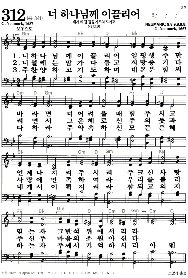 새찬송가 악보: 312장 너 하나님께 이끌리어(고화질/가사)