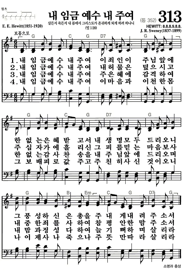 새찬송가 313장 내 임금 예수 내 주여의 고화질로 스캔된 새찬송가 악보입니다.