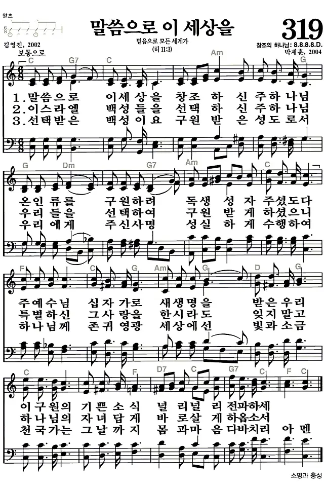 새찬송가 악보: 319장 말씀으로 이 세상을(고화질/가사)
