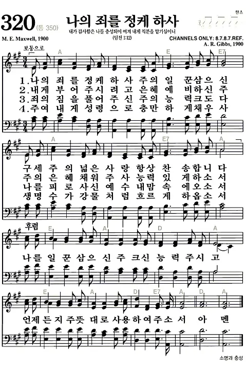 새찬송가 320장 나의 죄를 정케 하사의 고화질로 스캔된 새찬송가 악보입니다.