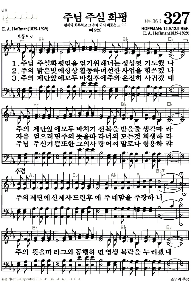 새찬송가 악보: 327장 주님 주실 화평(고화질/가사)