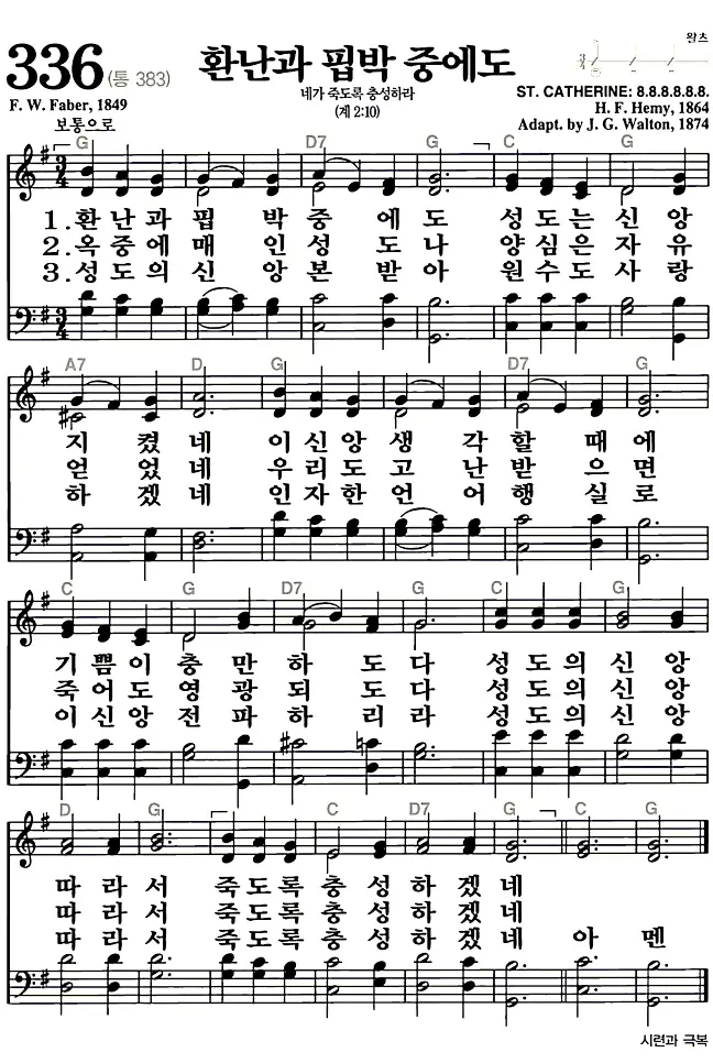새찬송가 악보: 336장 환난과 핍박 중에도(고화질/가사)