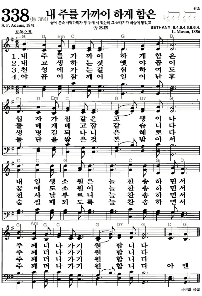 새찬송가 악보: 338장 내 주를 가까이 하게 함은(고화질/가사)