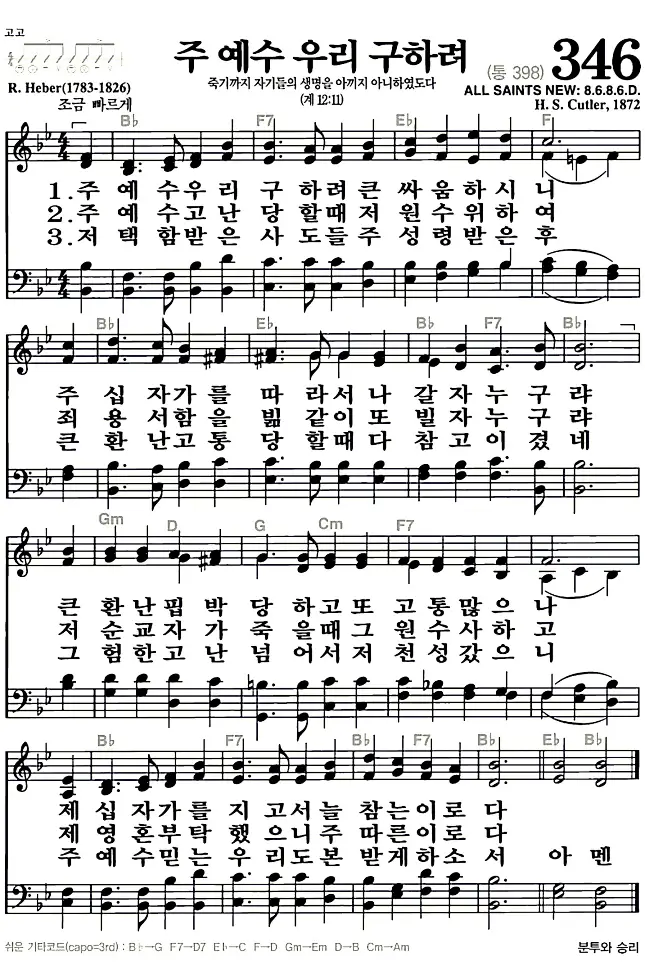 새찬송가 악보: 346장 주 예수 우리 구하려(고화질/가사)