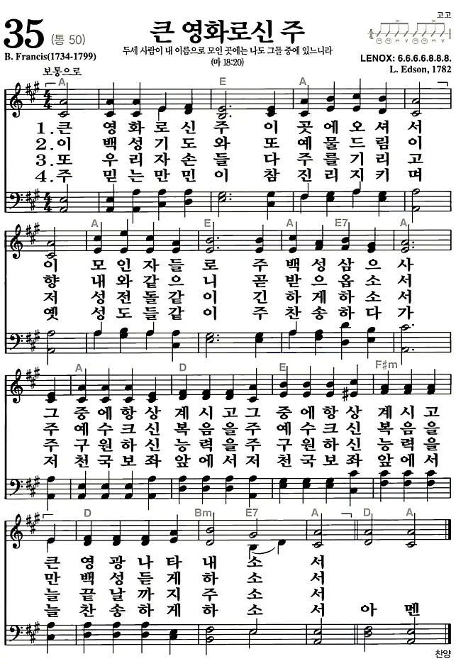 새찬송가 악보: 35장 큰 영화로신 주(고화질/가사)