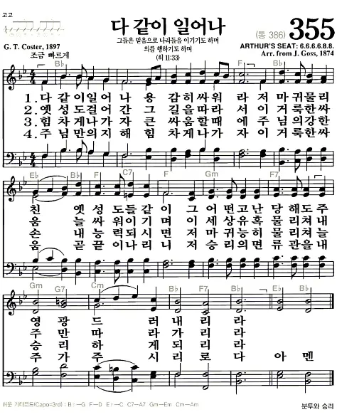 새찬송가 악보: 355장 다같이 일어나(고화질/가사)