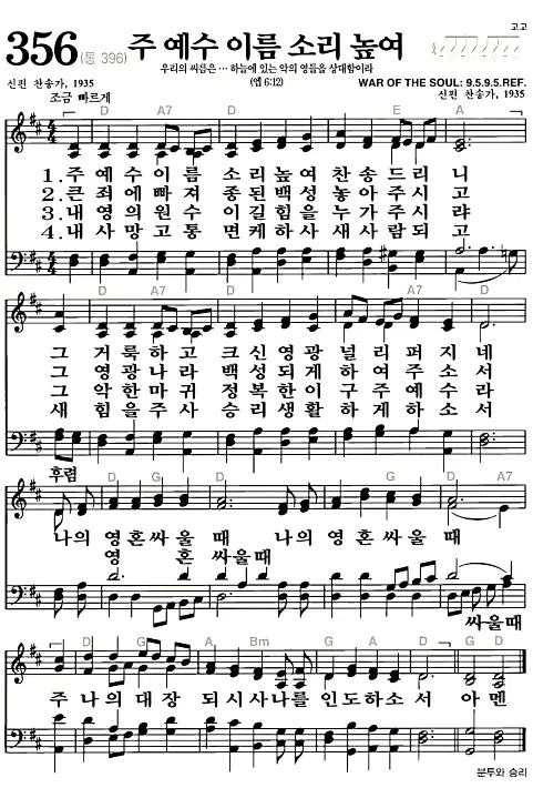 새찬송가 악보: 356장 주 예수 이름 소리 높여(고화질/가사)