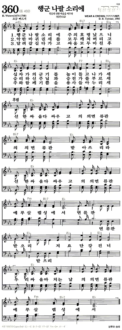 새찬송가 악보: 360장 행군 나팔 소리에(고화질/가사)