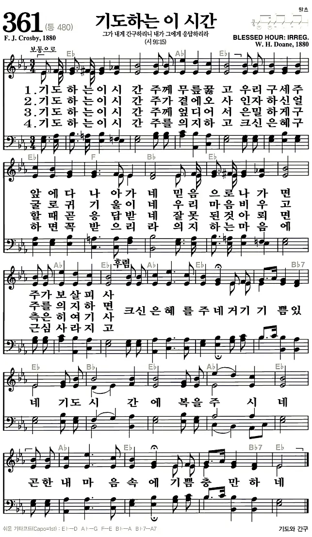 새찬송가 악보: 361장 기도하는 이 시간(고화질/가사)