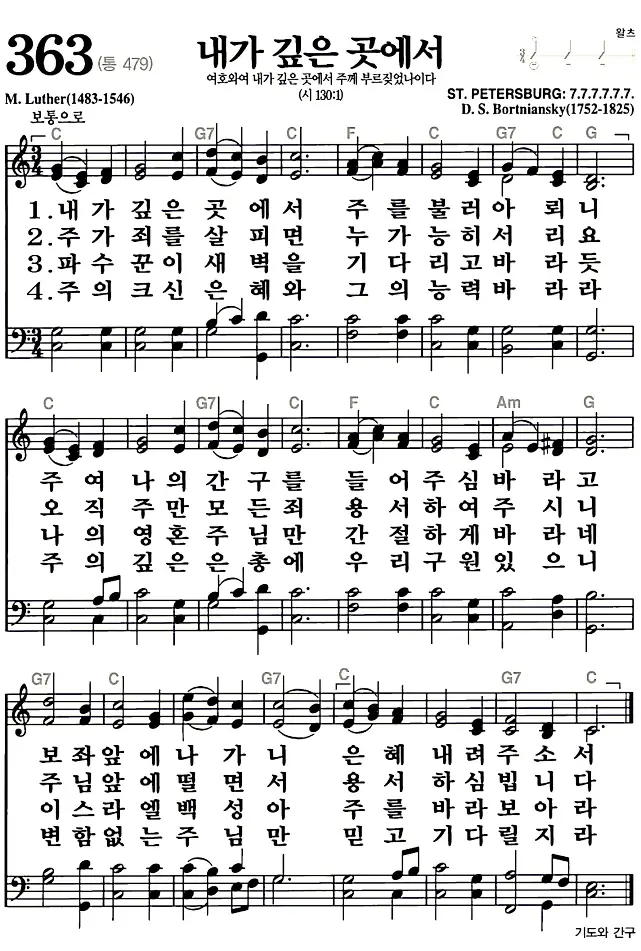 새찬송가 악보: 363장 내가 깊은 곳에서(고화질/가사)