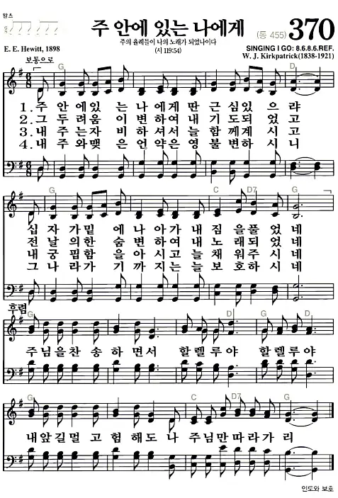 새찬송가 악보: 370장 주안에 있는 나에게(고화질/가사)
