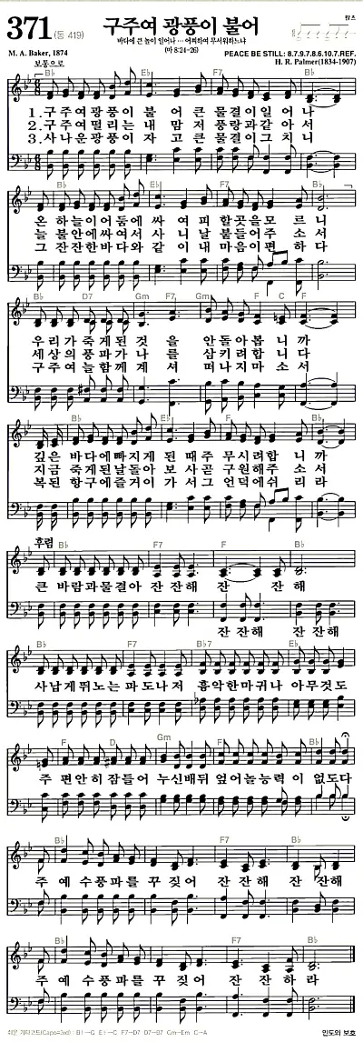 새찬송가 악보: 371장 구주여 광풍이 불어(고화질/가사)