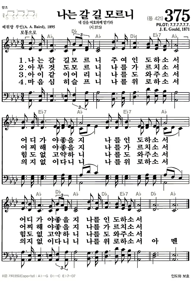 새찬송가 악보: 375장 나는 갈길 모르니(고화질/가사)