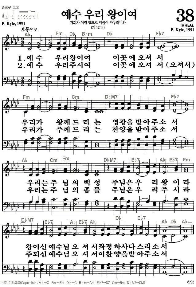 새찬송가 악보: 38장 예수 우리 왕이여(고화질/가사)