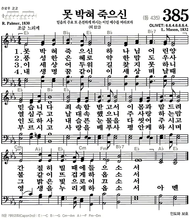새찬송가 악보: 385장 못박혀 죽으신(고화질/가사)