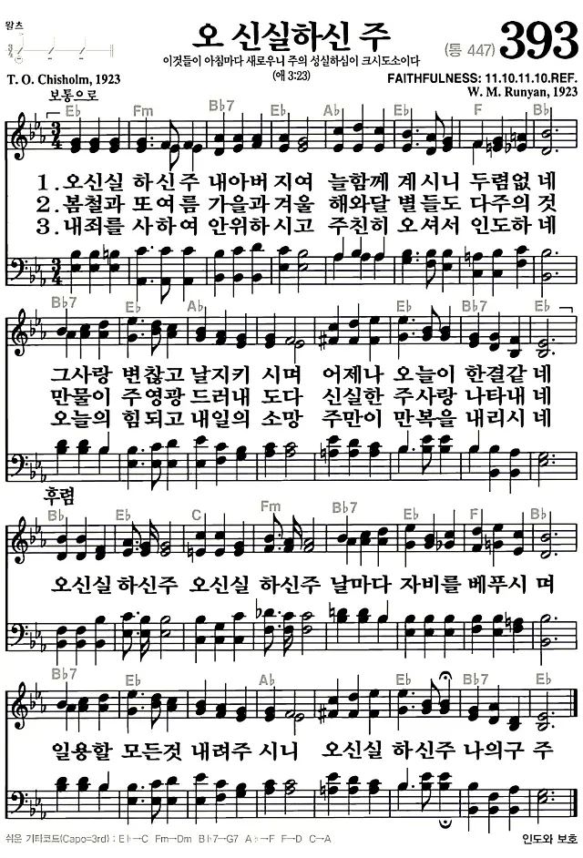 새찬송가 악보: 393장 오 신실하신 주(고화질/가사)