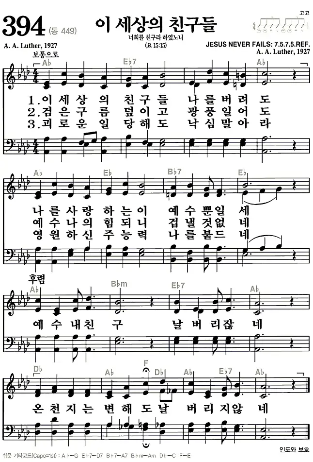 새찬송가 악보: 394장 이 세상의 친구들(고화질/가사)