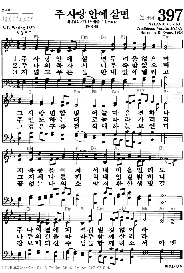새찬송가 악보: 397장 주 사랑 안에 살면(고화질/가사)